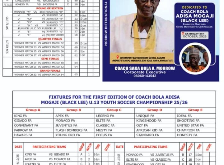 The 1st edition of the Bolakale Adisa Mogaji (Black Lee) U-13 Unity Football Cup 2025 has...